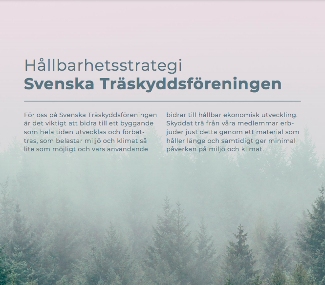 Efterfrågan på klimatsmart och hållbart byggande ökar hela tiden och trä är ett av våra mest omtyckta och miljömässigt fördelaktiga byggmaterial. Svenska Träskyddsföreningens arbete med skyddat trä ska bidra till att framtidens byggande är hållbart och inte belastar miljö och klimat. Det innebär att vi åtar oss att arbeta med tre stora hållbarhetsutmaningar och hållbarhetsarbetet bedrivs inom fyra fokusområden.