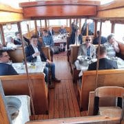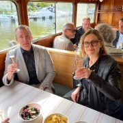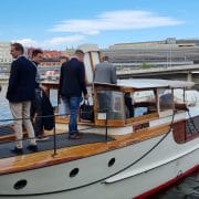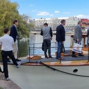 Efter mötena åkte vi båt genom Stockholm för att under trevliga former besöka Lugnetterasen som vann Träskyddspriset 2021. Vi besökte även Nacka Marinstaden som var nominerad till priset 2020. Läs mer om Träskyddspriset här…