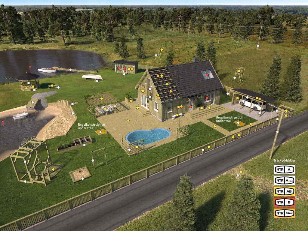 I dag är tryckimpregnerat trä utan tvekan det mest kostnadseffektiva materialvalet och därtill kan uppvisa en stark miljöprofil, men även här gäller det att se upp och kontrollera att det du använder är NTR-klassificerat. Träskyddsklass NTR A för användning i markkontakt och träskyddsklass NTR AB för användning ovan mark.